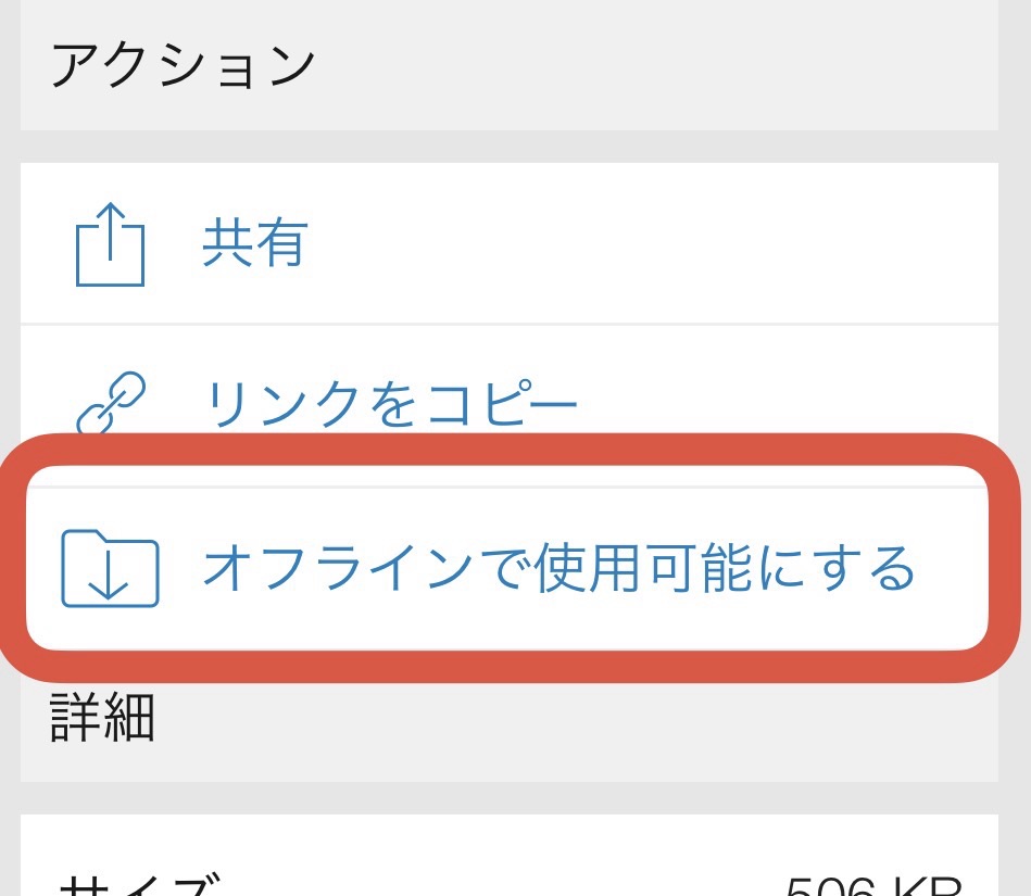 2.「オフラインで使用可能にする」をタップ