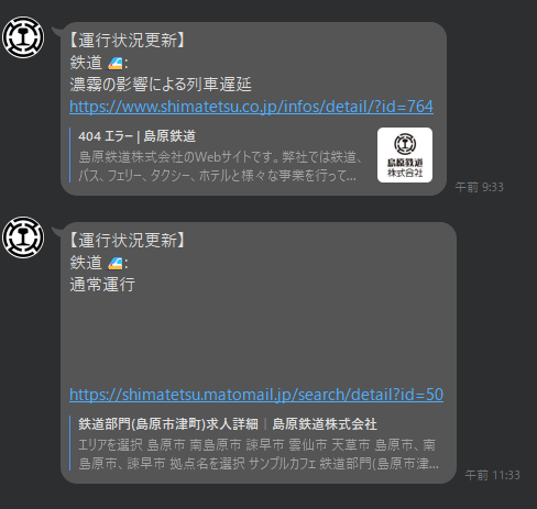 島原鉄道/バス/フェリーの運航状態が変わるとLINEでお知らせします。